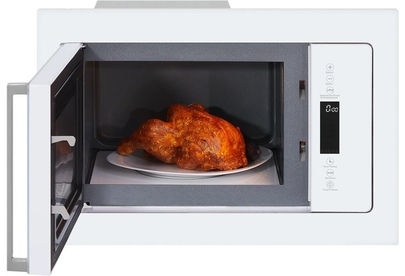 Мощность (Вт): 1400, Объем (л): 25, Тип управления: сенсорное, Дисплей: Да, Гриль: Да; Керамическое дно; Без поворотного стола; Ручка: серебристый металл; Цвет: белое стекло