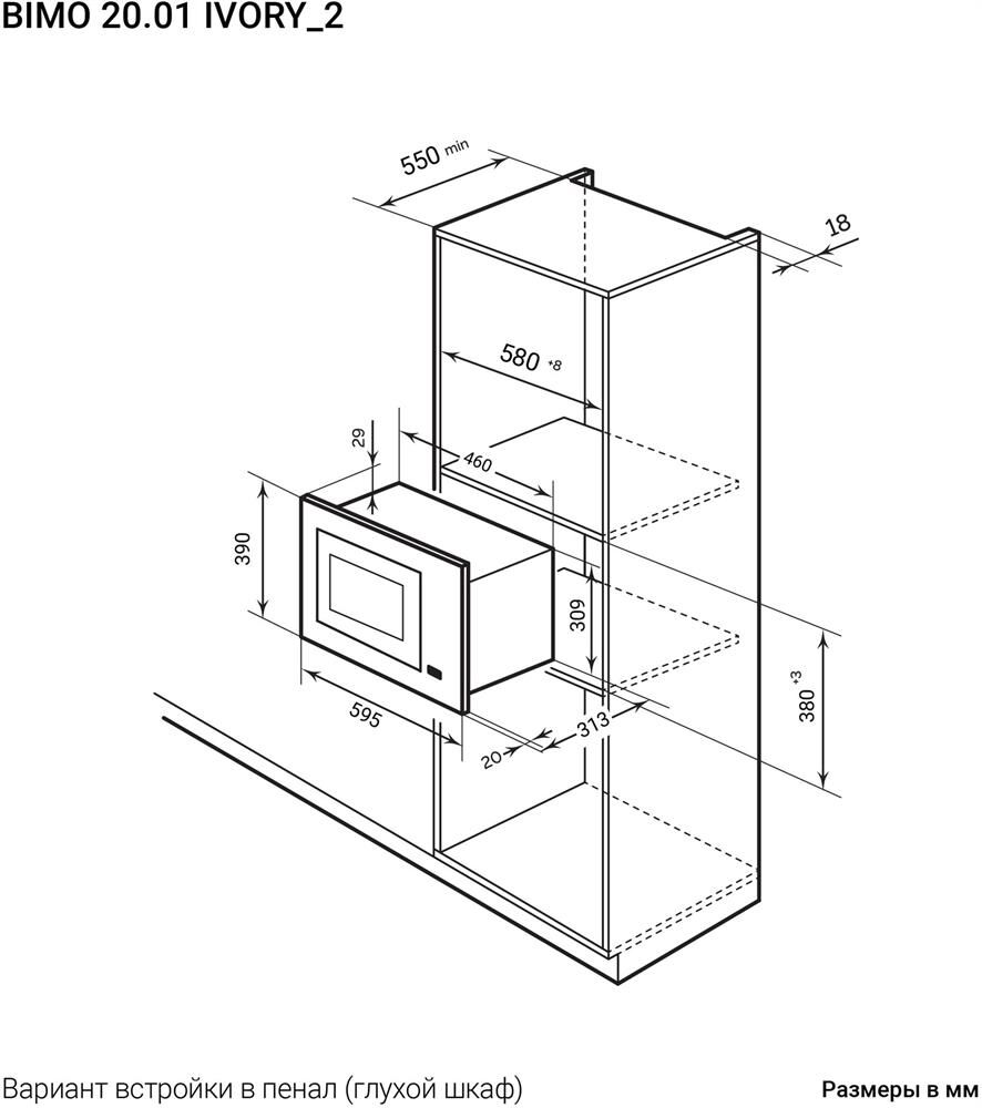 Печь микроволновая встраиваемая LEX BIMO 20.01 IVORY Микроволновая печь