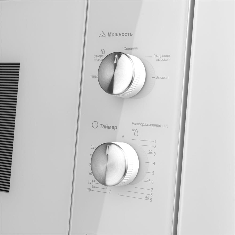 Объем: 20. Мощность микроволн: 800. Тип управления: механическое. Открывание дверцы: кнопка. Направление открытия дверцы: справа-налево. Внутреннее покрытие камеры: нержавеющая сталь. Диаметр поворотного стола: 245. Цвет корпуса: белый. Вес (нетто): 14.5. Габариты упаковки (ед) ДхШхВ: 0.66x0.39x0.441. Вес упаковки (ед): 20. Страна производства: Китай. Внутреннее освещение: есть. Количество ступеней регулировки мощности: 5. Таймер на отключение, макс. время: 35. Язык панели управления: русский. Гарантия: 36 мес.. Размеры (ШхВхГ): 59.5 х 38.8 х 34.4 см. Размеры ниши (ШхВхГ): 56 х 38 х 34 см. Комплектация: комплект для установки. Дополнительные режимы: размораживание по весу. Особенности управления: регулировка мощности. Режимы: автоматическая разморозка, соло. Мощность: 800 Вт. Режимы: автоматическая разморозка, соло, размораживание по весу. Объем: 20 л, покрытие нержавеющая сталь. Тип управления: механическое, открывание дверцы: кнопка. Размеры (ШхВхГ): 59.5 х 38.8 х 34.4 см