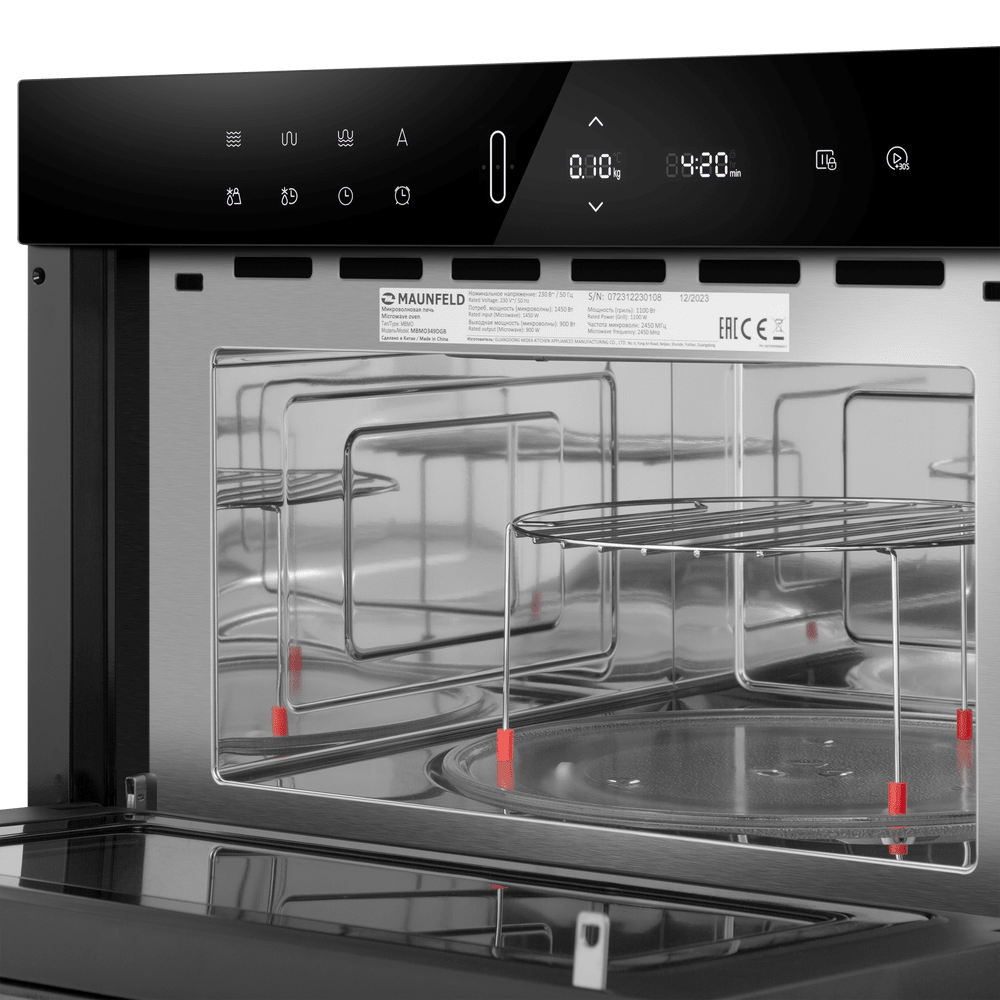 Встраиваемая микроволновая печь Maunfeld MBMO.349DGB — это стильное и функциональное устройство, созданное для современной кухни. Изготовленная в Китае, эта модель отличается высоким качеством и надёжностью, что подтверждает гарантия на 12 месяцев. Черный цвет корпуса печи придает ей строгий и элегантный вид, что позволяет гармонично вписать ее в любой интерьер. Устройство обладает просторной рабочей камерой на 34 литра, изготовленной из нержавеющей стали. Это обеспечивает долговечность и удобство в использовании. Также присутствует удобная кнопка для открывания дверцы, а специальное сплошное застекление обеспечивает отличный обзор внутреннего пространства печи. Микроволновая печь оснащена сенсорным управлением и символьно-цифровым дисплеем, что делает процесс приготовления более удобным и понятным. Встроенный таймер и часы помогут контролировать время приготовления блюд. Кроме того, устройство имеет 5 уровней мощности микроволн и 8 автоматических режимов приготовления. Особенностью этой модели я