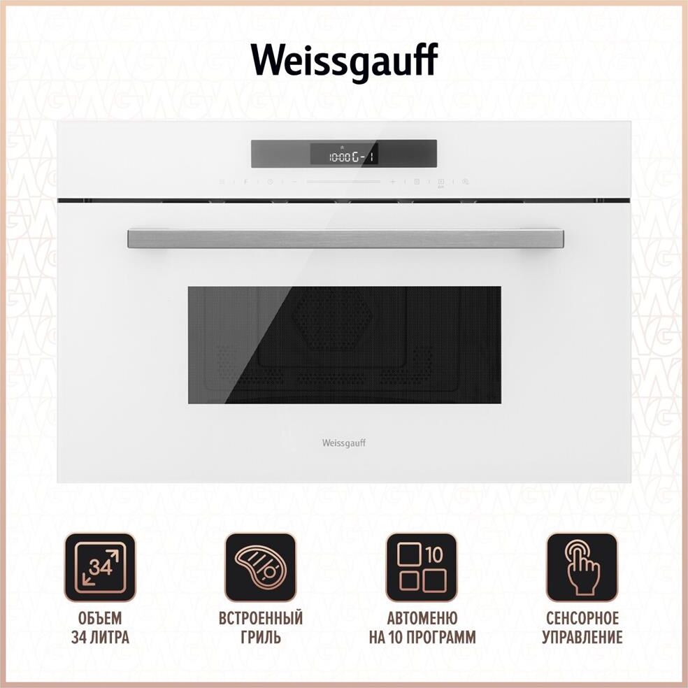 Печь микроволновая встраиваемая WEISSGAUFF Микроволновая печь BMWO-342 DW Touch 34л. 900Вт белый (встраиваемая)
