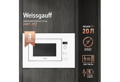 Печь микроволновая встраиваемая WEISSGAUFF Микроволновая печь встраиваемая 20L HMT-202