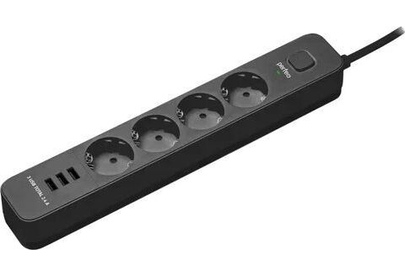 Сетевой фильтр 4 евророзетки и 3 USB порта на 2.4A, Длина 2м, Номинальный ток 10А, Максимальная нагрузка 2500Вт, Варисторная защита и защитные шторки для детей. Есть крепление на стену.