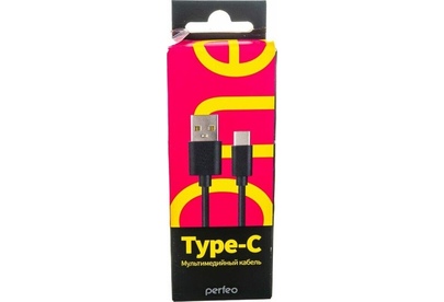 PERFEO (U4703) USB A вилка - Type-C вилка, 2.4A, черный, длина 1 м., Type-C ONE