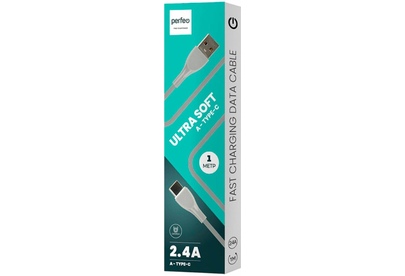 PERFEO (U4711) USB A вилка - Type-C вилка, 2.4A, серый, силикон, длина 1 м., ULTRA SOFT