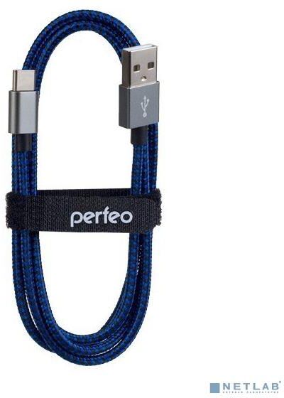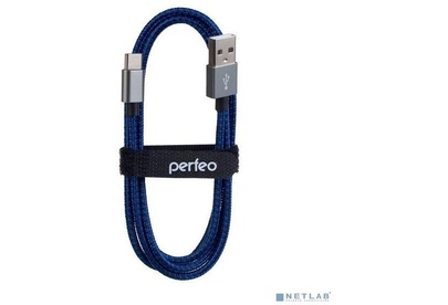 PERFEO Кабель USB2.0 A вилка - USB Type-C вилка, черно-синий, длина 1 м. (U4903)