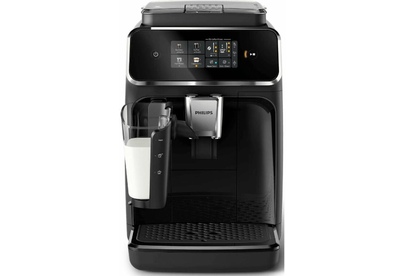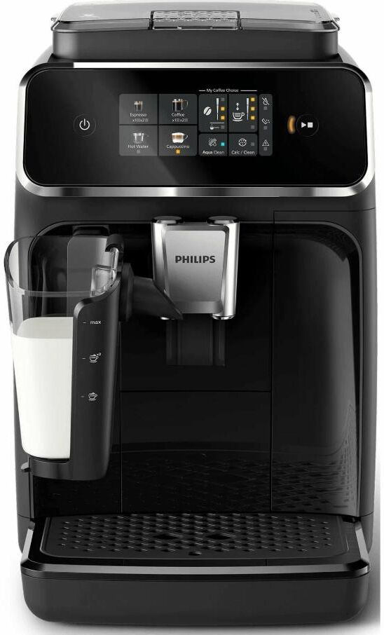 Полностью автоматическая эспрессо-кофемашина; 2 вида кофе, автоматический капучинатор, Сенсорная панель управления, мощность 1500 Вт, емкость для воды 1,8 л, емкость для зерен 275 гр, индикация: готовности к работе, необходимости очистки от накипи, отсутствия воды, отсутствия кофе, режима работы, Тип используемого кофе: зерновой, молотый, Количество степеней помола: 12¶Виды напитков: Эспрессо, Капучино, Латте, Американо, Кол-во одновременно приготовляемых чашек кофе: 2 шт, Автоотключение, Автоотключение при отсутствии воды, контроль крепости коф, настройка температуры напитка, В комплекте: Мерная ложка, тестовая полоска для проверки жесткости воды, фильтр для воды AquaClean, тюбик со смазкой, ёмкость для молока, Цвет: черный