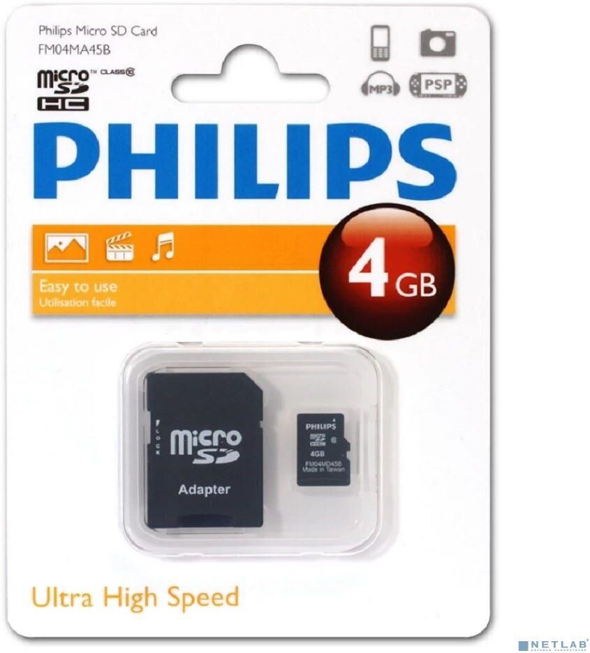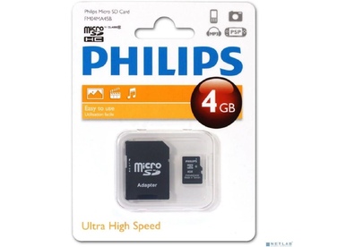 [Карта памяти ] Micro SecureDigital 4GB PHILIPS microSDHC Class 10 (SD адаптер)