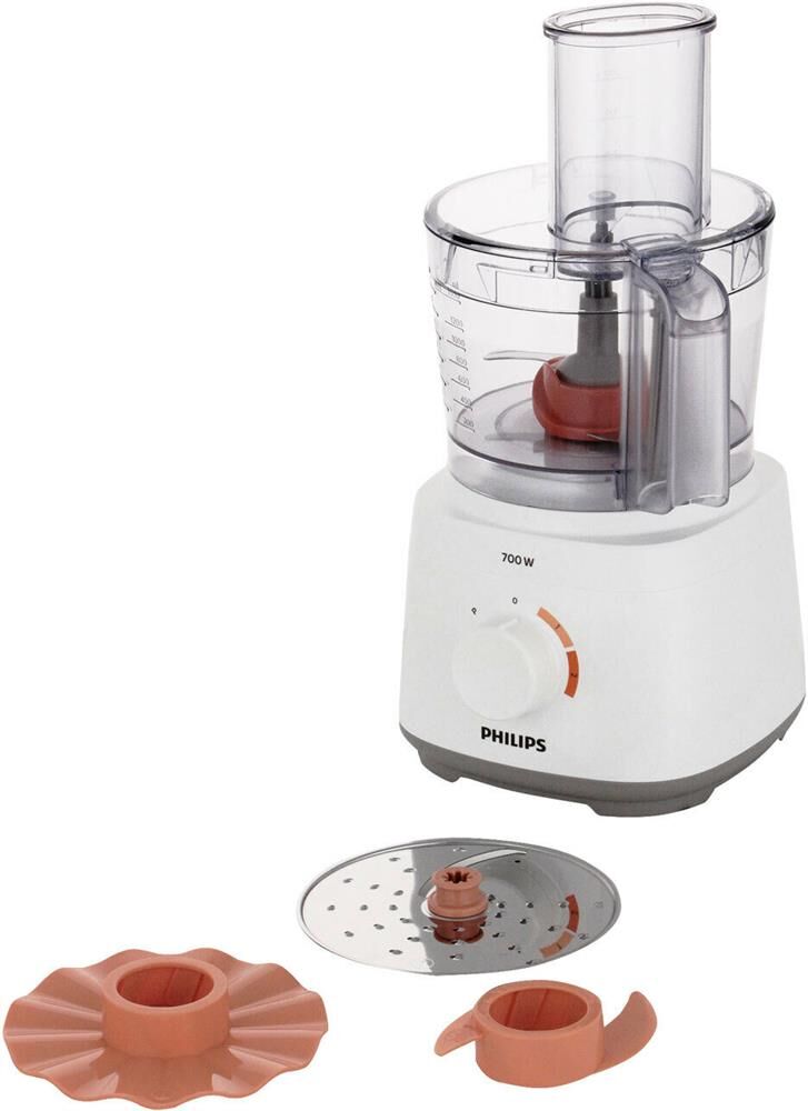 Мощность: 700. Емкость основной чаши: 2.1. Материал оcновной чаши: пластик. Количество скоростей: 2. Импульсный режим: есть. Количество вставок/дисков: 3. Насадка для теста: есть. Насадка для взбивания: есть. Терка: есть. Шинковка: есть. Максимальный вес теста: 1.5. Мойка съемных частей в посудомоечной машине: ДА. Прорезиненные ножки: есть. Материал корпуса: пластик. Габариты упаковки (ед) ДхШхВ: 0.315x0.25x0.345. Вес упаковки (ед): 3.15. Гарантия: 12 мес.. Размеры (ШхВхГ): 244 х 377 х 244 мм. Цвет: белый. Мощность: 700 Вт. Насадки: для взбивания, для теста. Основная чаша: емкость 2.1 л, материал пластик. Количество скоростей: 2, импульсный режим. В комплекте: тёрка, шинковка