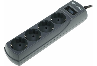 Входная вилка, тип: EURO. Длина шнура: 1.8. Номинальная мощность: 3300. Номинальный ток: 15. Номинальное напряжение питающей сети: 220. Частота сети: 50. Максимальный импульсный ток помехи: 10000. Подавление импульсных помех: да. Максимальная рассеиваемая энергия: 150. Защита от короткого замыкания: плавкий предохранитель. Защита от перегрева: термопредохранитель. Количество выходных розеток: 4. Габариты упаковки (ед) ДхШхВ: 0.335x0.15x0.067. Вес упаковки (ед): 0.46. Гарантия: 60 мес.. Цвет: серый. Количество выходных розеток: 4. Входная вилка: EURO. Длина шнура: 1.8 м. Номинальная мощность: 3300 ВA