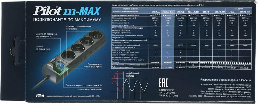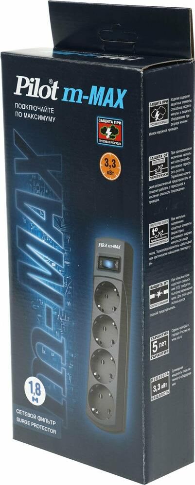 PILOT Сетевой фильтр m-MAX, 1.8м, серый [143]