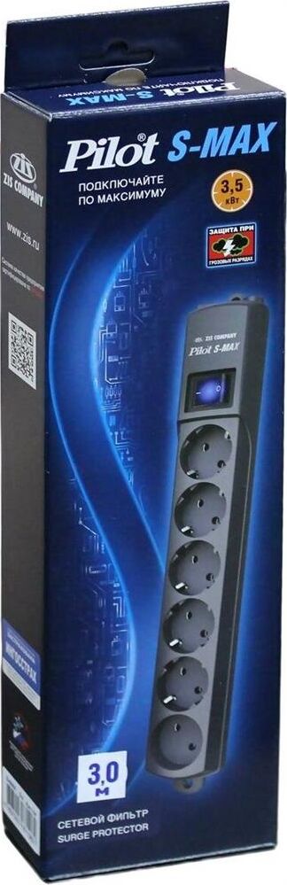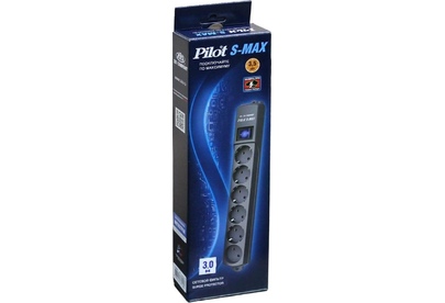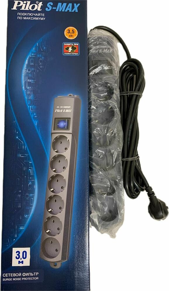 PILOT Сетевой фильтр S-MAX 3м (6 розеток) серый (коробка)