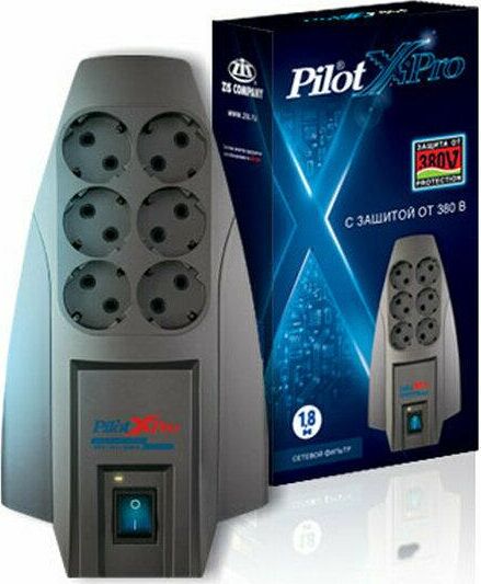 PILOT Сетевой фильтр X-Pro 5м (6 розеток) серый (коробка)