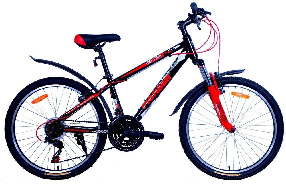 Размер колеса: 24"Назначение: ПОДРОСТКОВЫЕТип: ГОРНЫЙРазмер рамы: 12"Материал рамы: стальКоличество скоростей: 21Серия переключателей скоростей: PIONEERВилка: амортизирующая, GOODТормоза передние/задние: V-brake/V-brakeПокрышки: PIONEER, 24"x2,125",матовая краска