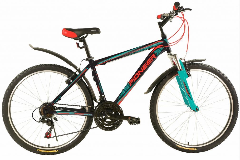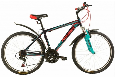 Размер колеса: 26"Назначение: ДЛЯ ВЗРОСЛЫХТип: ГОРНЫЙРазмер рамы: 16" и 19"Материал рамы: стальКоличество скоростей: 21Серия переключателей скоростей: PIONEERВилка: Амортизирующая, GOODТормоза передние/задние: V-brake/V-brakeПокрышки: PIONEER