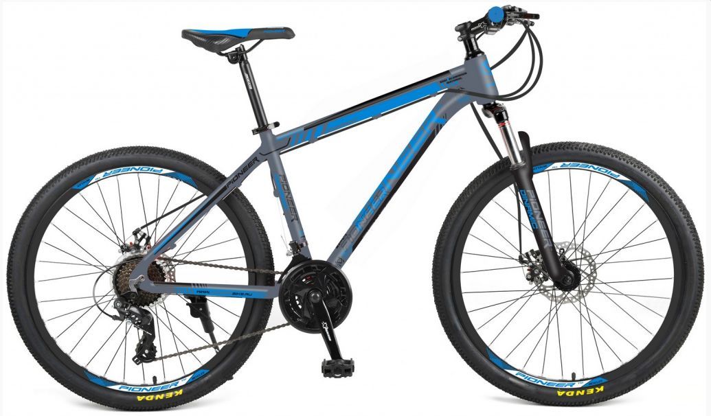 Размер колеса: 26".Тип: ГОРНЫЙ.Размер рамы: 17".Материал рамы: алюминий.Количество скоростей: 21.Серия переключателей скоростей: PioneerВилка: амортизирующая, GOOD, ход 100ммТормоза передние/задние: диск/диск, механикаПокрышки: PIONEER