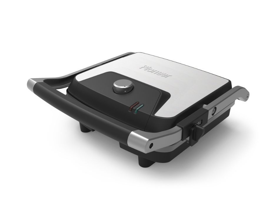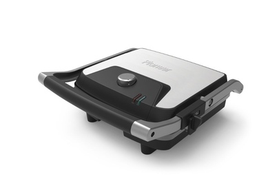 Гриль электрический, мощность 2000 ватт, до 230 градусов, размер панелей 29*26 см, антипригарное покрытие панелей, равномерый нагрев, индикация работы, индикация нагрева, поддон для сбора жира