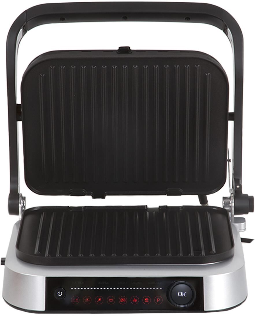 PIONEER GR1020E(13984) Тип управления: электронное Количество автоматических программ: 7 Ручной режим работы: есть Регулировка температуры: 70-230 °С Автоматическое определение толщины стейка и времени приготовления: есть Варианты использования гриля: открытый/закрытый Съемные нагревательные панели: есть Покрытие нагревательных панелей: антипригарное Съемный поддон для сбора жира: есть Индикаторы: питания, нагрева Защита от перегрева: есть Комплектация: электрический гриль, 2 съемный панели, поддон для сбора жира, гарантийный талон, инструкция на русском языке Материал корпуса: сталь Цвет: черный с серебристым Размер упаковки, см. (ВхШхГ): 38.3x20.1x43 Вес в упаковке, кг.: 6.1 Максимальная потребляемая мощность, Вт.: 2100 Электропитание, в., Гц.: 220-240, 50