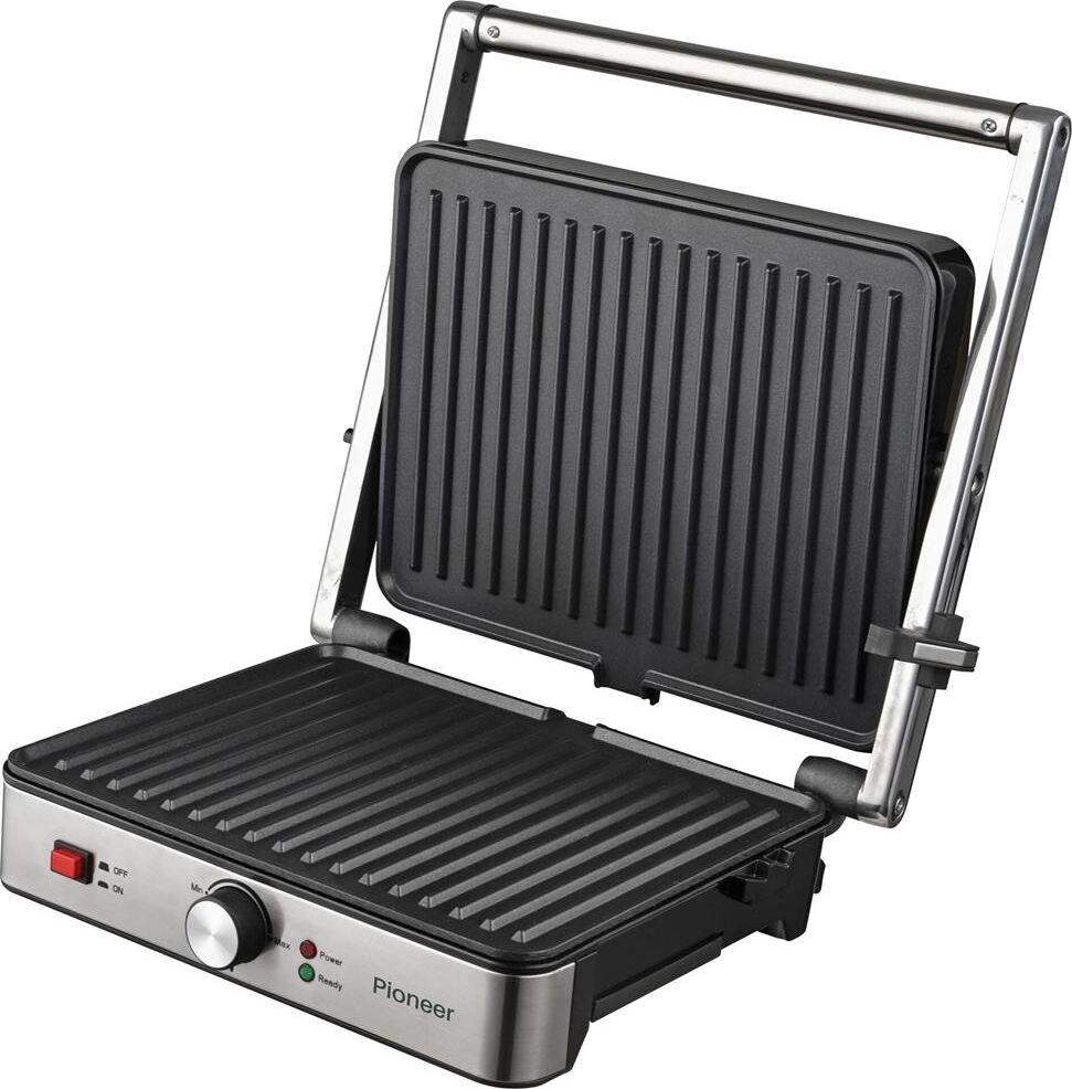 Максимальная мощность, Вт.: верхний нагрев 1000 Вт; нижний нагрев 1000 Вт Количество автоматических программ: 6 Ручной режим работы: есть Регулировка температуры: есть Регулировка времени: есть Варианты использования гриля: открытый/закрытый Съемные нагревательные панели: есть Покрытие нагревательных панелей: антипригарное Размер панелей, мм.: 320x220 Независимый нагрев панелей: есть Панели можно мыть в посудомоечной машине: да Съемный поддон для сбора жира: есть Функция размораживания: есть Индикаторы: индикатор цвета для напоминания о процессе приготовления Дисплей: есть, LED Комплектация: электрический гриль, двухсторонние панели с гладкой и гриль стороной, панель для венских и бельгийских вафель, термощуп для измерения температуры внутри продукта, гарантийный талон, инструкция на русском Материал корпуса: нержавеющая сталь Цвет: серебристый Электропитание, в., Гц.: 220-240, 50