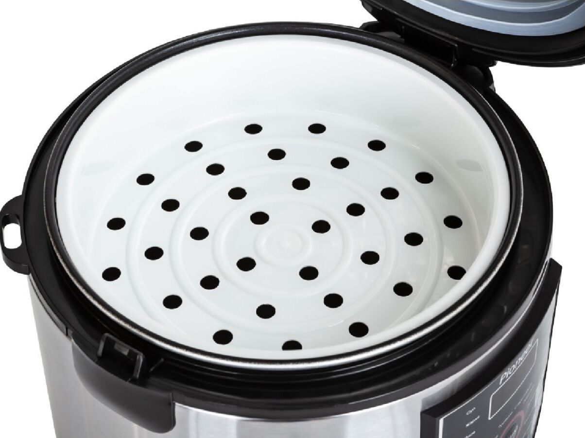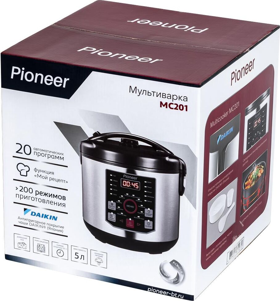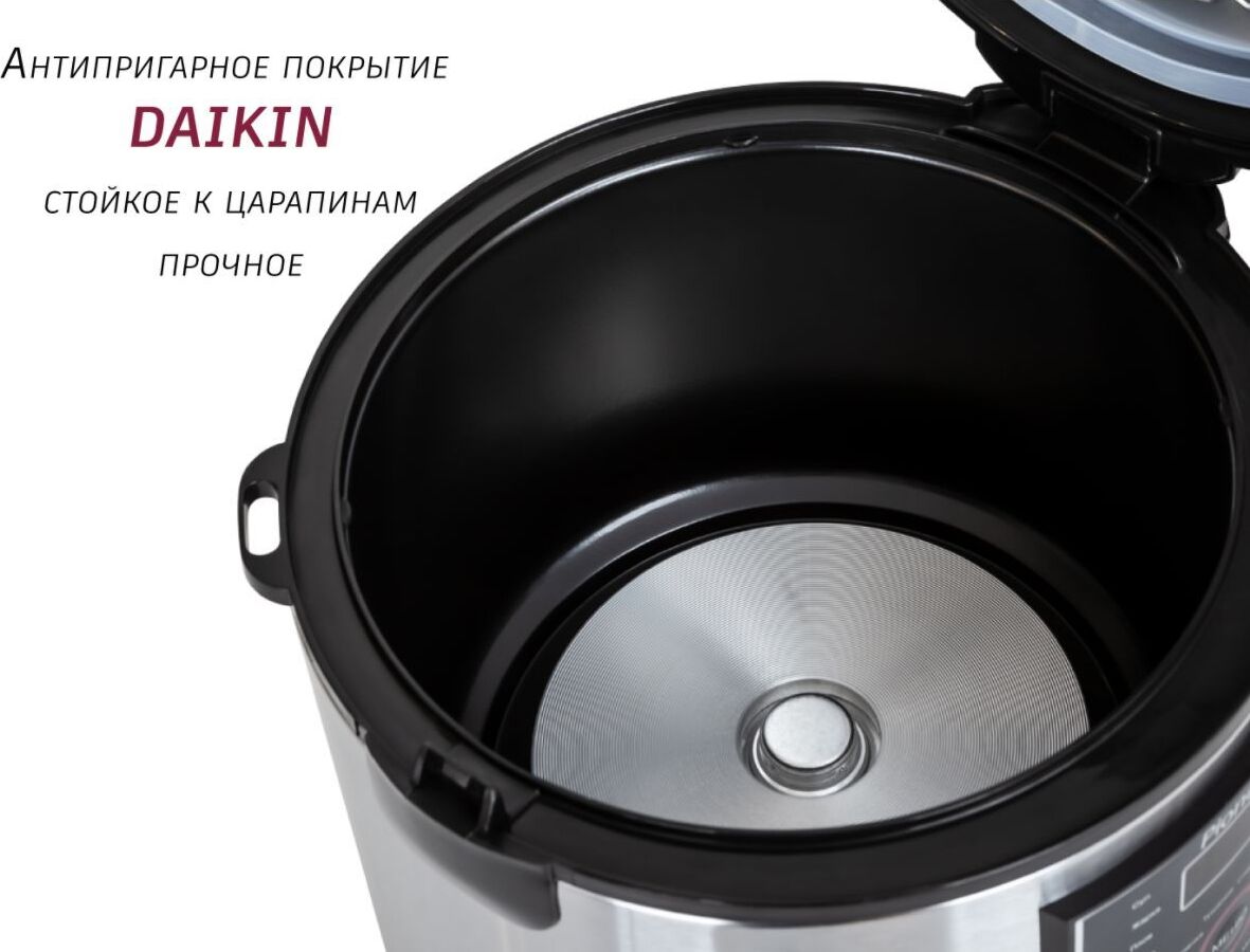Мультиварка, мощность 860 ватт, объем чаши: 5 литров, 20 автоматических программ, более 200 режимов приготовления, светодиодный многофункциональный дисплей, поддержание температуры 24 часа, таймер отсрочки, антипригарное покрытие внутренней чаши DAIKIN – прочное и устойчивое к царапинам, книга рецептов