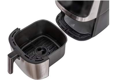 Аэрогриль, электронное управление, цветной светодиодный дисплей, мощность: 1850 Вт, внутренний объем камеры: 8 Л, функция приготовления на пару, антипригарное покрытие, смотровое окно , внутренняя подсветка, таймер: до 60 минут, регулируемая температура: 80 -200 градусов, ручная настройка режимов приготовления, 10 предустановленных программ приготовления: замороженный картофель фри, выпечка, сладкий картофель, пицца, рыба, креветки, стейк, куриные ножки, куриные крылышки, арахис, технология "Fry Force 360°" позволяет готовить блюда быстро и равномерно, практически без масла
