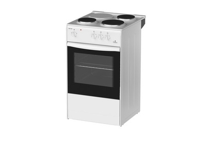 (ВхШхГ) 85х50х56см. 3 чугун. конфорки. Термостат, 5-позиционный переключатель режимов жарочного шкафа, ступенчатые переключатели режимов работы электроконфорок. Объем духовки 50л. 4 режима работы духовки. Решетка жароч. шкафа, поддон. Цвет белый.