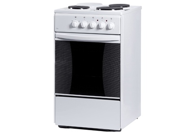 (ВхШхГ)85х50х60см.Плита электрическая.Цвет белый.Вес 32кг.Объем духовки 50л.Мощность духовки: ТЭН верхний 0,8кВт, ТЭН нижний 1,2кВт.Хозяйственный отсек.