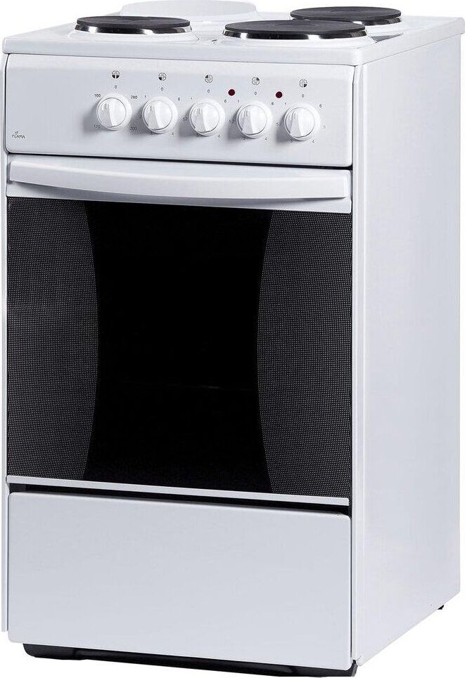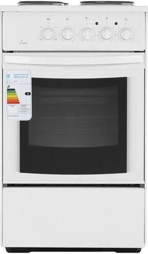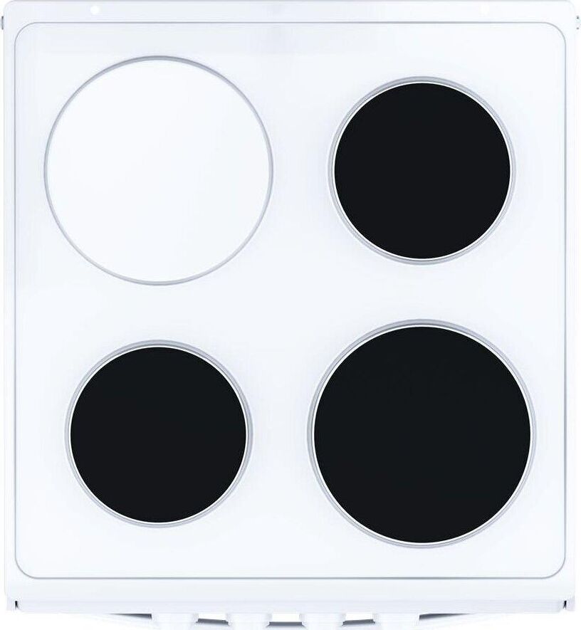 (ВхШхГ)85х50х60см.Плита электрическая.Цвет белый.Вес 32кг.Объем духовки 50л.Мощность духовки: ТЭН верхний 0,8кВт, ТЭН нижний 1,2кВт.Хозяйственный отсек.