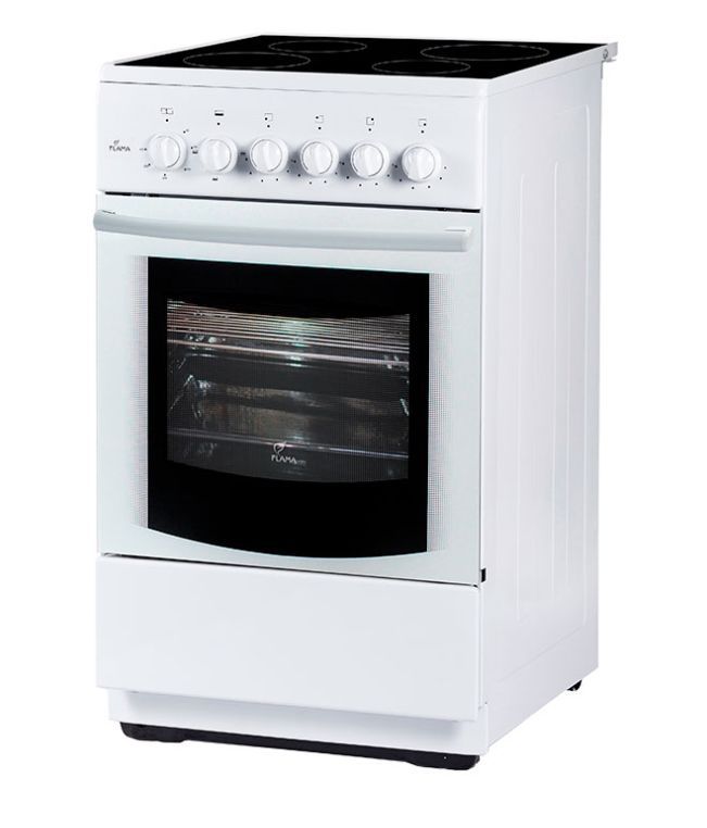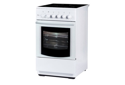 Рабочий стол: стеклокерамика, Тип конфорок: 4 быстрого нагрева, Цвет белый, Габариты (ВхШхГ) (см) 85х50х60, Духовка: электрическая Объем: 50 л, Подсветка духовки, Выдвижной ящик, Вес: 33 кг