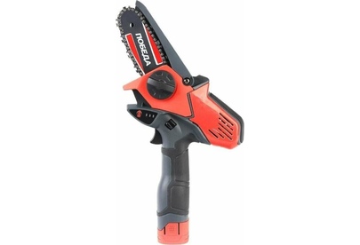 Длина шины: 4 дюйм/10 см. Шаг цепи: 1/4 дюйм. Толщина зубьев: 1,1 мм. Количество звеньев: 28 шт. Емкость аккумулятора: 14,4 А*ч. Напряжение аккумулятора: 1,5 В. Тип аккумулятора: Li-ion. Тип двигателя: щеточный. Скорость цепи: 8 м/с. Объем бака для смазки цепи: нет. Автоматическая смазка цепи: нет. Тормоз цепи: есть. Гарантия: 1 год. ВхШхГ упаковки: 20х20х27 см. Вес брутто упаковки: 1,7 кг. Объем упаковки: 0,010 куб. м. Комплект поставки: пила церкулярная, шина, цепь, аккумулятор, зарядное устройство, защитный кожух, емкость для масла.