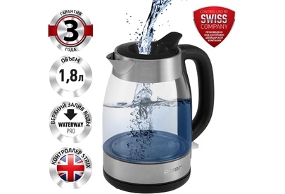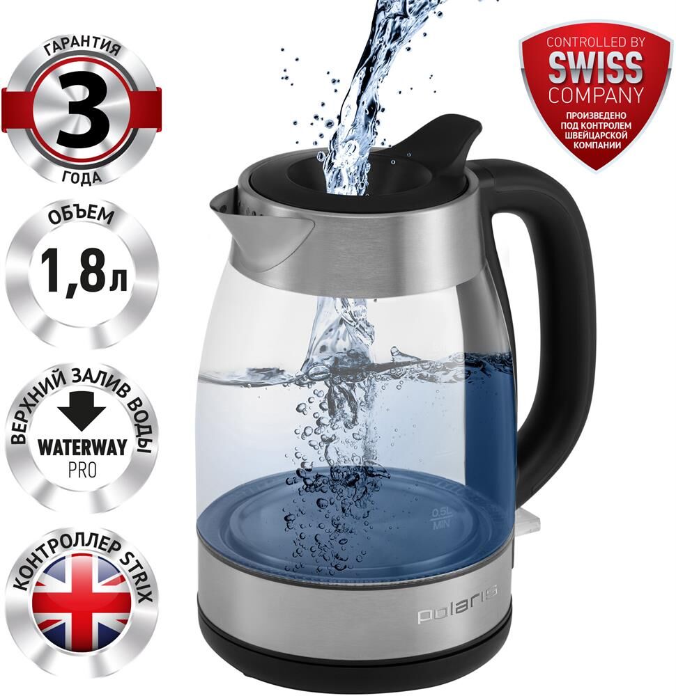 POLARIS Чайник электрический PWK 1817CGL 1.8л. 2200Вт серебристый/черный корпус: нержавеющая сталь/с