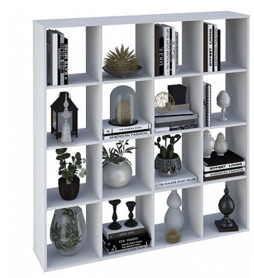 Модель имеет 16 секций. Крепится к стене с помощью специальных болтов и уголков. Материал изделия: ЛДСП. Подходит для хранения предметов,зонирования жилого помещения и декоративного использования. Габариты, см (Д*Ш*В): 29*137,6*142