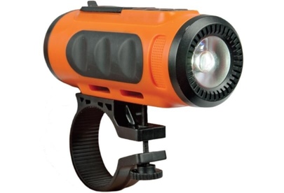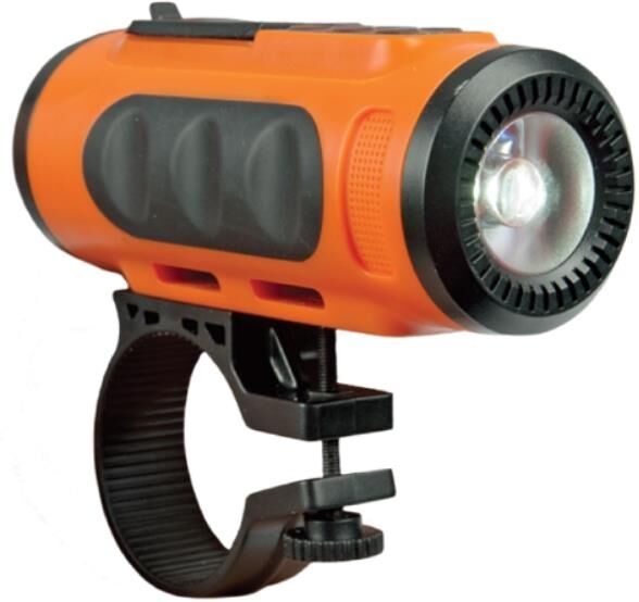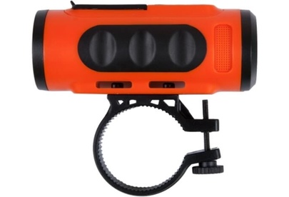 (BTH+TF+AUX+FM) Портативная Bluetooth миниколонка, встроенное FM радио, мощность 3 Вт, мр3-плеер (с micro SD), линейный вход AUX, встроенный Li-ion аккумулятор 1000мАч, IPX 3, крепление на руль, кабель, цвет - оранжевый с черным