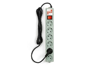 защита от импульсн помех, короткого замык и перегрузок, 220В, 3,3кВт, макс 15А, макс поглощ энергия 180Дж, кабель ПВС-ВП 3х1.0мм2, Выключ – со светодиод индикац и коммутац двух проводников (фазы и нуля), 5 заземл евро-розеток+1без, корпус – негорючий плас