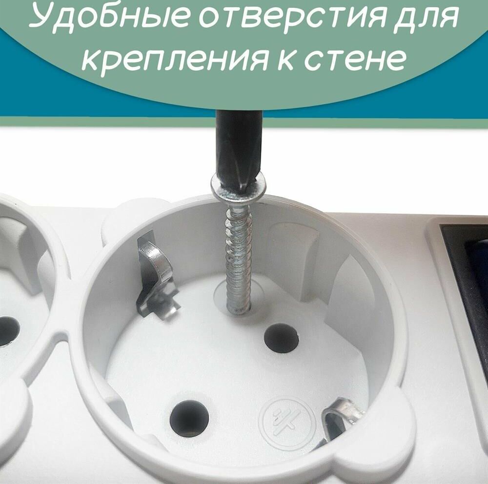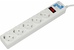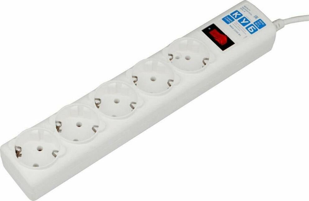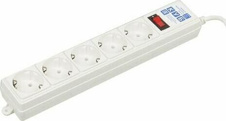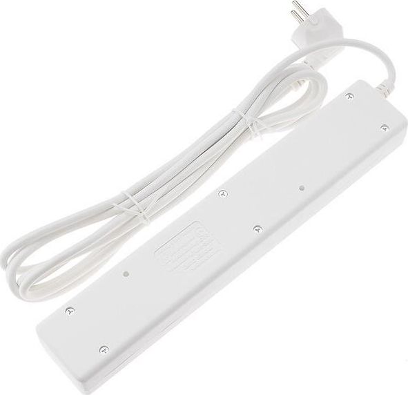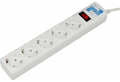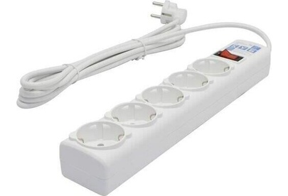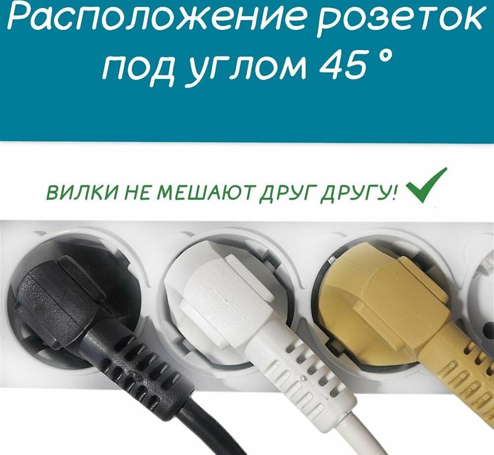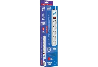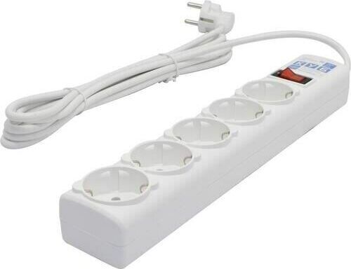 защита от импульсн помех, короткого замык и перегрузок, 220В, макс ток нагрузки 10А, макс поглощ энергия 90Дж, кабель ПВС-ВП 3х0.75мм2, Выключ – со светодиод индикац и коммутац двух проводников (фазы и нуля), 5 заземл евро-розеток, корпус – негорючий плас