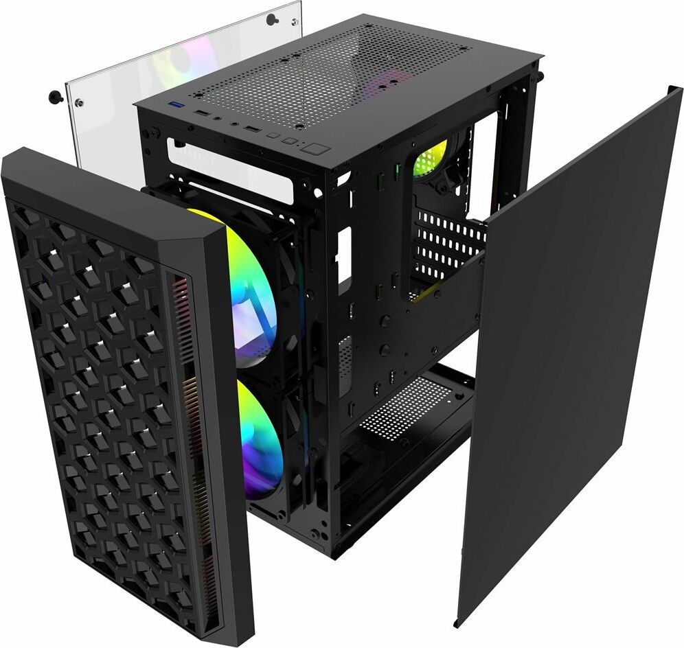 Powercase CMIMTB-L3 Корпус Mistral Micro T3B, Tempered Glass, Mesh, 2x 140mm + 1х 120mm 5-color fan,