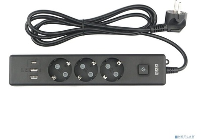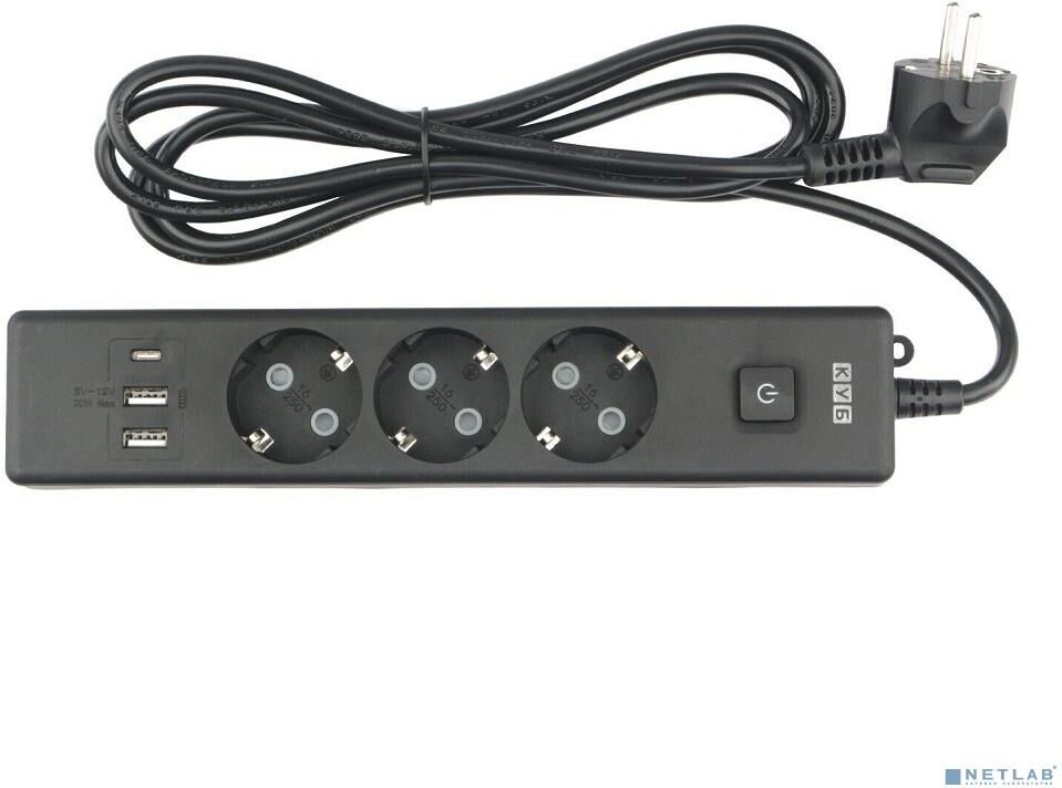 [Сетевые фильтры] PowerCube Бытовой удлинитель (PC-6B-2M) 3р с/з вык.,3USB, 3500 Вт, 16А, 1.9 м, 3*1,0 (черный) 22310