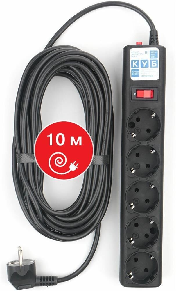 POWERCUBE Сетевой фильтр SPG5-10M, 10м, черный