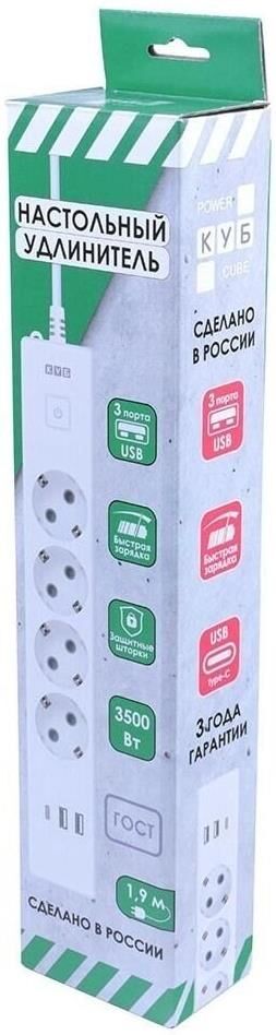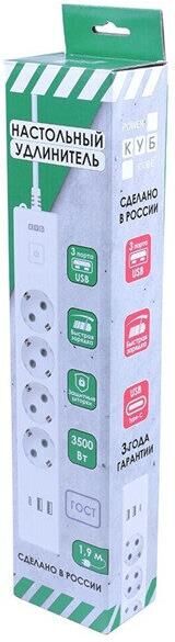 POWERCUBE Сетевой удлинитель PC-6-2M, 1.9м, белый