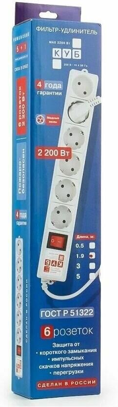 POWERCUBE SPG(5+1)-B-10 3м (6 розеток) серый (коробка)