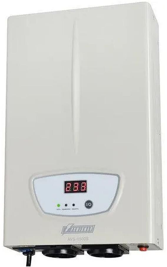 **Стабилизатор напряжения Powerman AVS 1500 S 1500 VA** Powerman AVS 1500S — это стабилизатор напряжения, который обеспечивает надёжную защиту вашей техники от скачков напряжения и перегрузок. Он идеально подходит для использования в домашних условиях или в офисе. **Основные характеристики:** * мощность: 1500 ВА; * диапазон входного напряжения: 140–260 В; * точность стабилизации: ±8 %; * количество розеток: 2 шт.; * тип стабилизатора: релейный. Стабилизатор Powerman AVS 1500S имеет компактный размер и небольшой вес, что делает его удобным в использовании. Он оснащён двумя розетками, что позволяет подключить к нему несколько устройств одновременно. Если вы ищете надёжный стабилизатор напряжения для защиты вашей техники, то Powerman AVS 1500S может стать отличным выбором. Он обеспечит стабильную работу ваших устройств и продлит их срок службы.