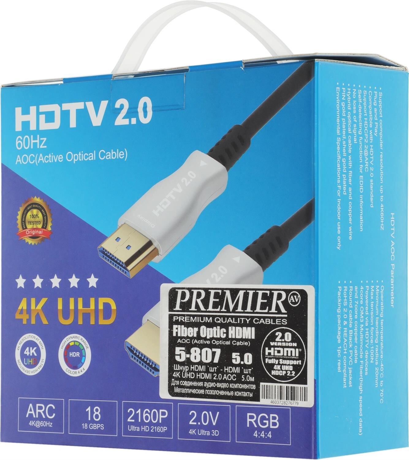 PREMIER Кабель соединительный аудио-видео 5-807 HDMI (m)/HDMI (m) 5м. черный (5-807 5.0)