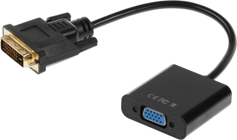 Тип: Переходник. Функциональный тип: видео. Позолоченные контакты: Да. Длина кабеля: 0.15. Цвет: черный. Гарантия: 3 мес.. Разъем 1: DVI-D (m). Разъем 2: VGA (f)