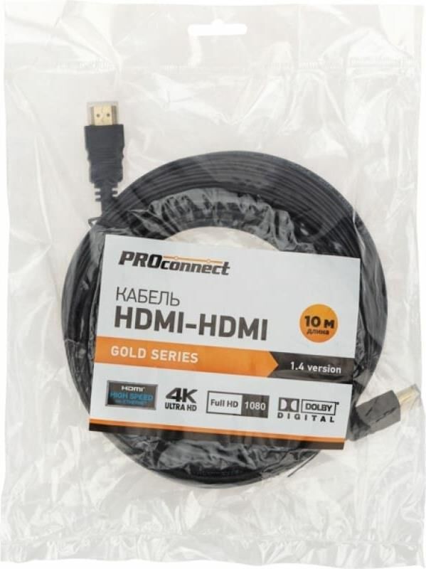 HDMI GOLD с фильтром (PE bag) PROconnect, имеет дополнительный фильтр снижающий электромагнитные помехи, длина шнура 10 метра.