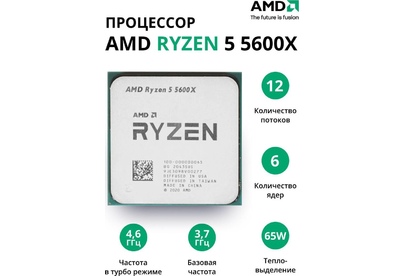 Процессор AMD Ryzen 5 5600X, SocketAM4, OEM (100-000000065)