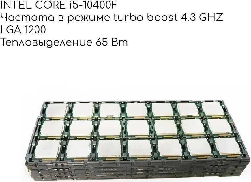 Процессор Intel Original Core i5-10400F (Soc-1200 2.9GHz, 6 ядер, частота 4.3/2.9 ГГц, кэш 12 МБ, техпроцесс 14 нм, TDP 65W)