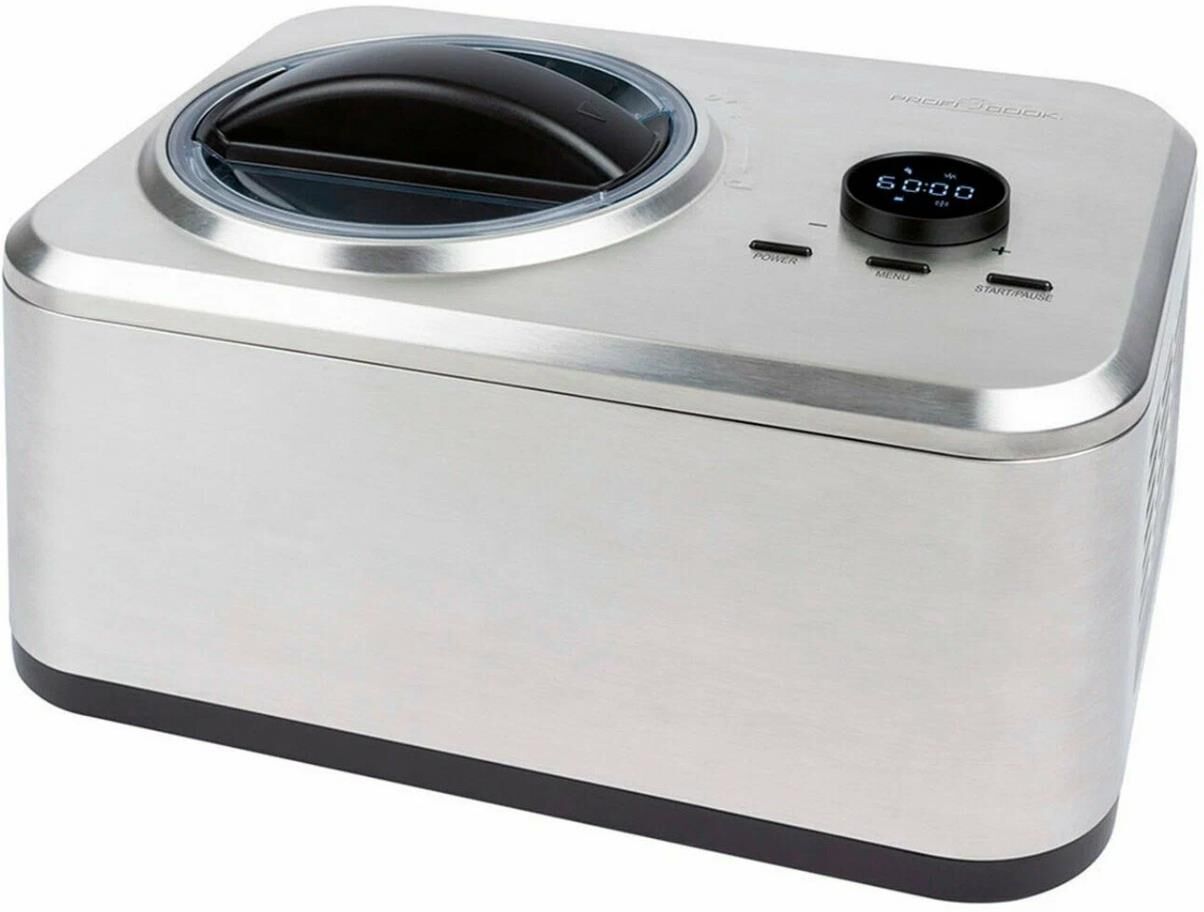 Подойдёт для приготовления мороженого, йогурта, замороженного йогурта и сорбета Корпус из нержавеющей стали Высококачественный дисплей Цифровой таймер с регулируемой настройкой времени (1-60 минут)/йогуртница (4-24 часа) Время приготовления: 20-25 минут Объём чаши для мороженого/йогурта 1500 мл (съёмная) Прозрачная крышка Двигатель постоянного тока Прорезиненные ножки 220-240В, 50Гц, 150 Вт В комплект входит лопаточка для мороженого и мерный стаканчик.