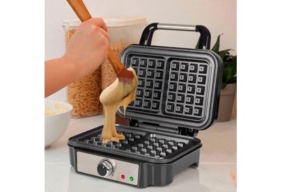 Покрытие рабочих частей: антипригарное. Индикатор нагрева: есть. Ненагревающаяся ручка: есть. Нагревательный элемент: электрическая спираль. Тип управления: механическое. Антипригарное покрытие: да. Форма нагревательных частей: прямоугольная. Формы для готовки: пластины для вафель. Количество отделений в пластине для вафель: 2. Установка температуры приготовления: есть. Регулировка температуры приготовления: плавная. Индикатор включения: есть. Защита от перегрузки: есть. Вес товара: 4.65. Габариты упаковки (ед) ДхШхВ: 0.3x0.13x0.29. Вес упаковки (ед): 2.2. Страна производства: Китай. Гарантия: 12 мес.. Мощность: 1000 Вт. Размер рабочей поверхности: 25 х 17 см. Материал корпуса: пластик и нержавеющая сталь. Цвет: черный. Размеры (ШхВхГ): 13 х 29 х 29 см. Тип управления: механическое. Размер рабочей поверхности: 25 х 17 см. Мощность: 1000 Вт. Количество отделений: в пластине для вафель 2. Регулировка температуры приготовления: плавная. Особенности: антипригарное покрытие, индикатор нагрева
