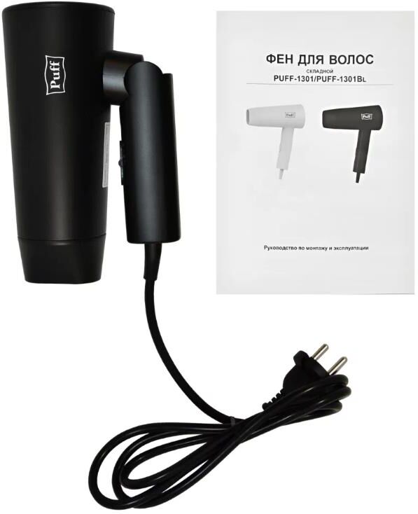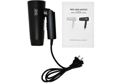 PUFF Фен для волос " -1301Bl", черный, 1,3 кВт