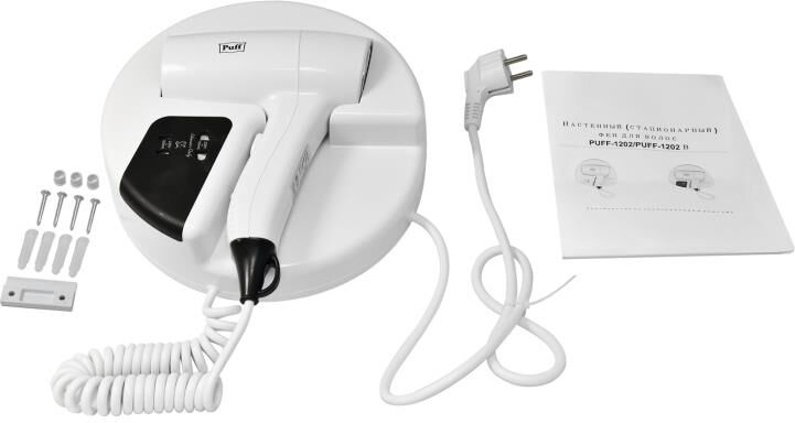 PUFF Фен для волос настенный " -1202B", белый, с доп. розеткой
